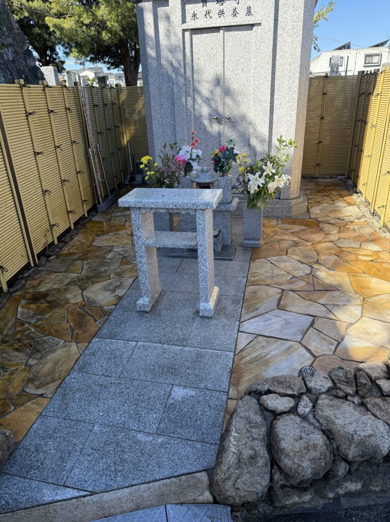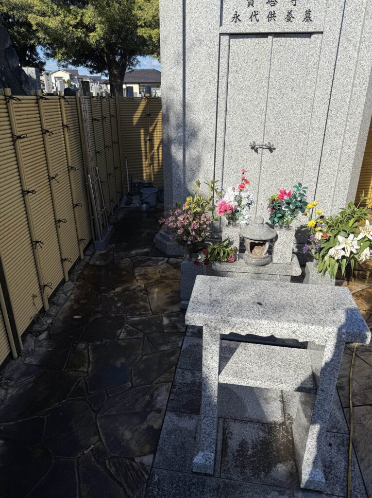 今日は宝塔寺の永代供養合祀墓の石張りがコケなんかで黒っぽく汚れていたので、