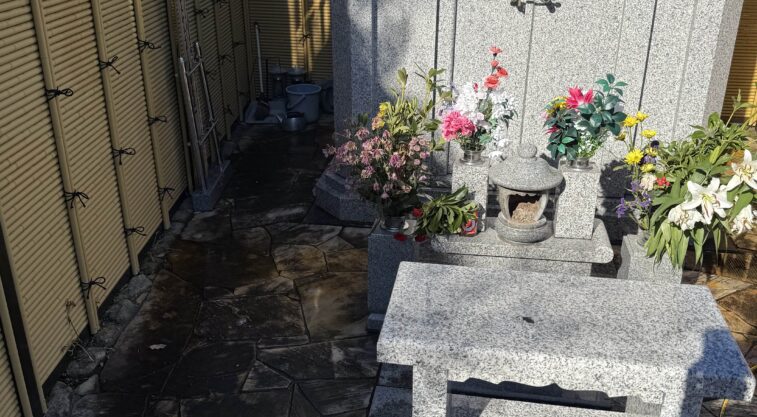 お墓においても日当たりや、、風通しの悪いところであったり、水の勾配が悪いと黒いコケが大発生してしまいます(T_T)