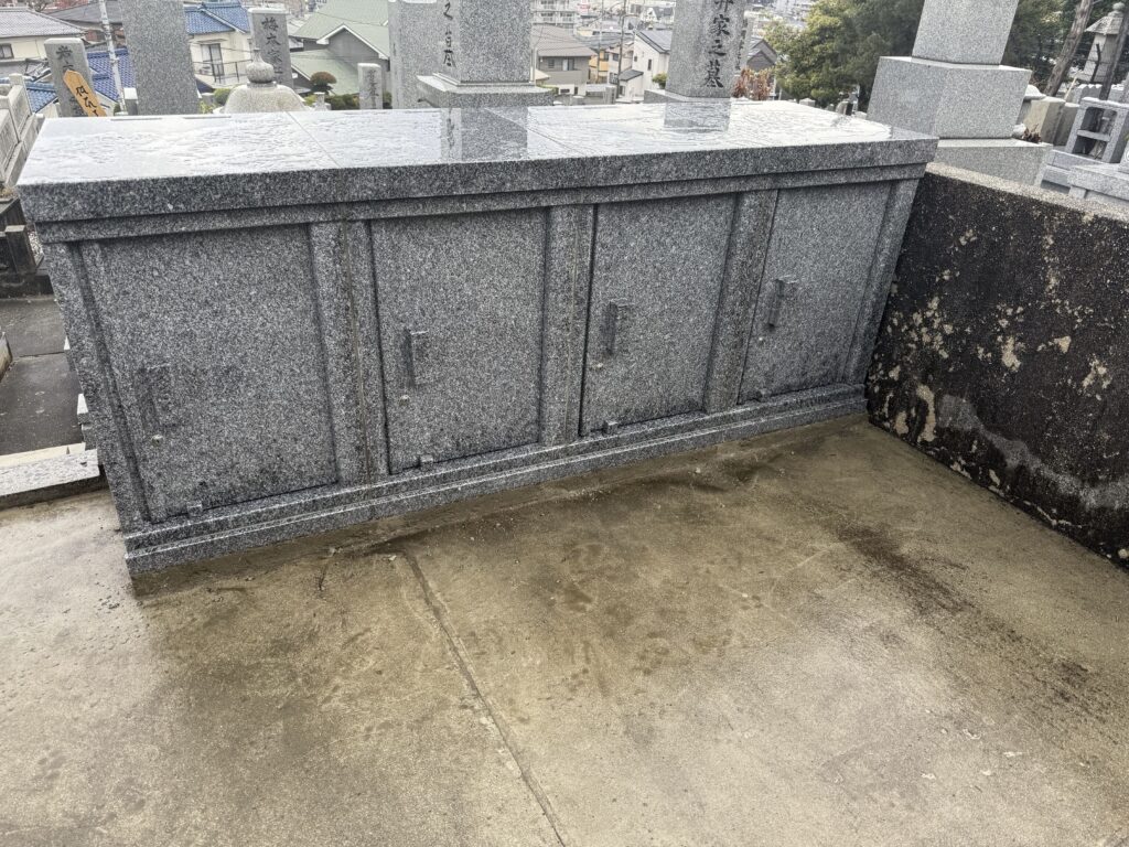 ※先程の舞台の区画は、奥に合同で使う塔婆立がございます。